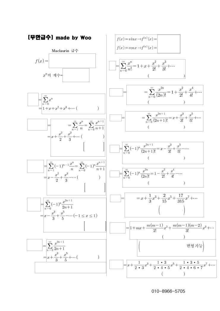 또한, 대체로 함수를 Maclaurin Series (맥클로린급수, 맥클러린 급수)로 유도하라는 것이 주로 나옵니다.