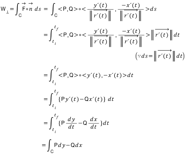 벡터장F가 곡선C에 법선 방향으로의 한 일을