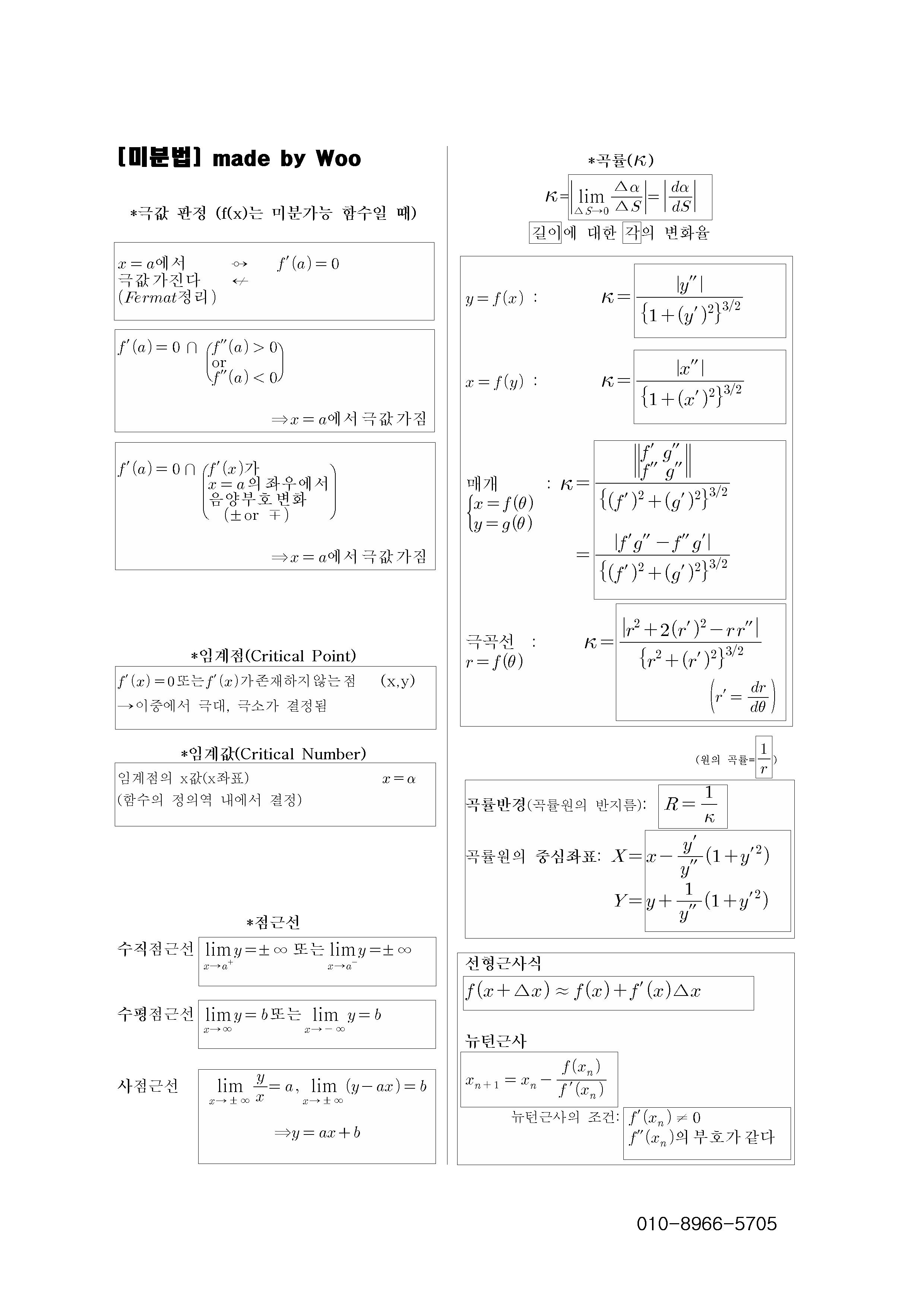 미적분학Calculus에서 배우는 내용에 대해 제가 직접 요약 정리한 내용을 공유합니다. ^^