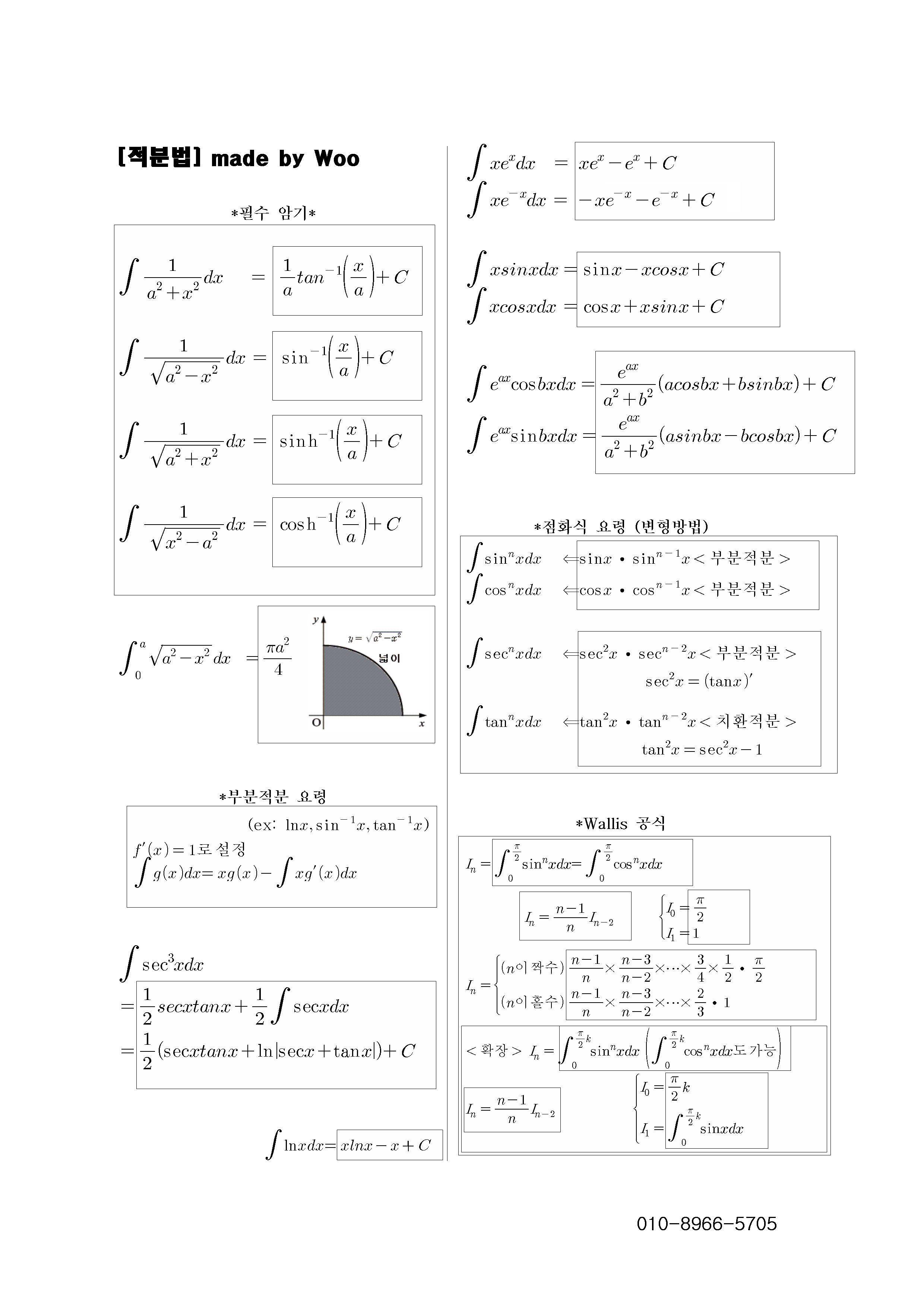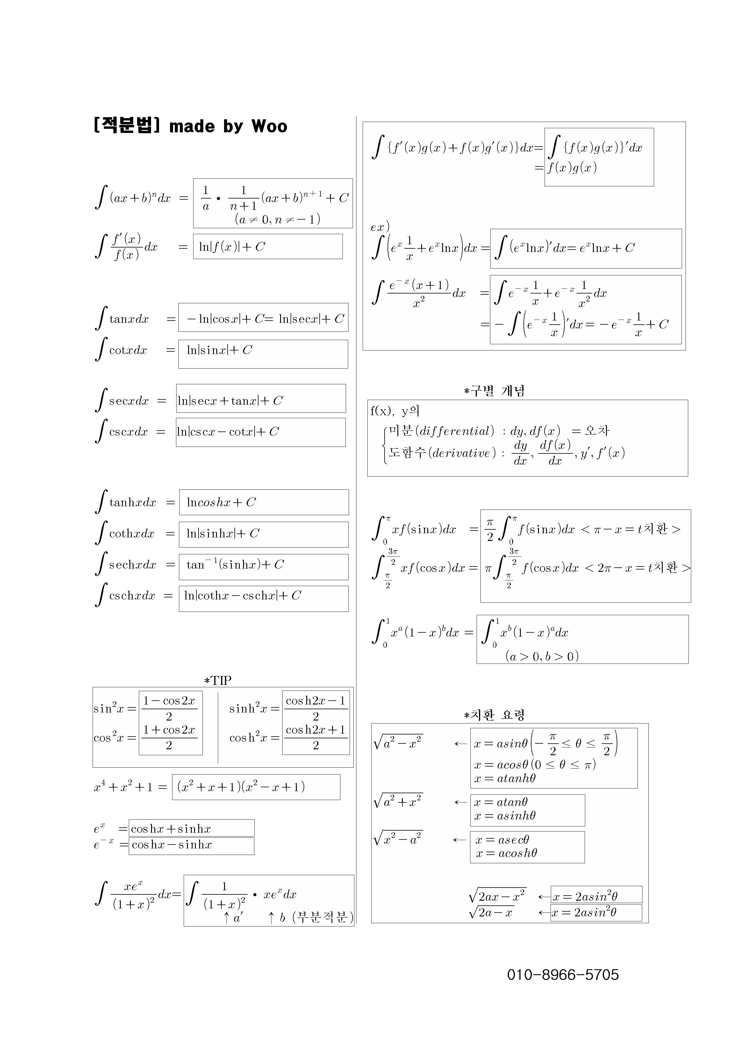 이번 자료들은, 적분법에 있어서 기본적인 공식들을 총정리해두었습니다.